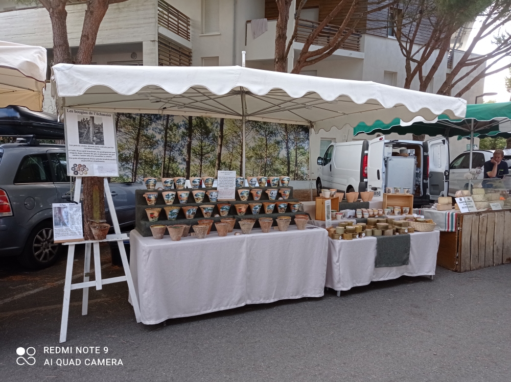 Depuis 30 ans, nous sommes présents sur les marchés d'été de la côte landaise. Issus d'une famille de résiniers, nous élaborons des bougies parfumées artisanales dans des pots anciens utilisés autrefois pour le gemmage.
